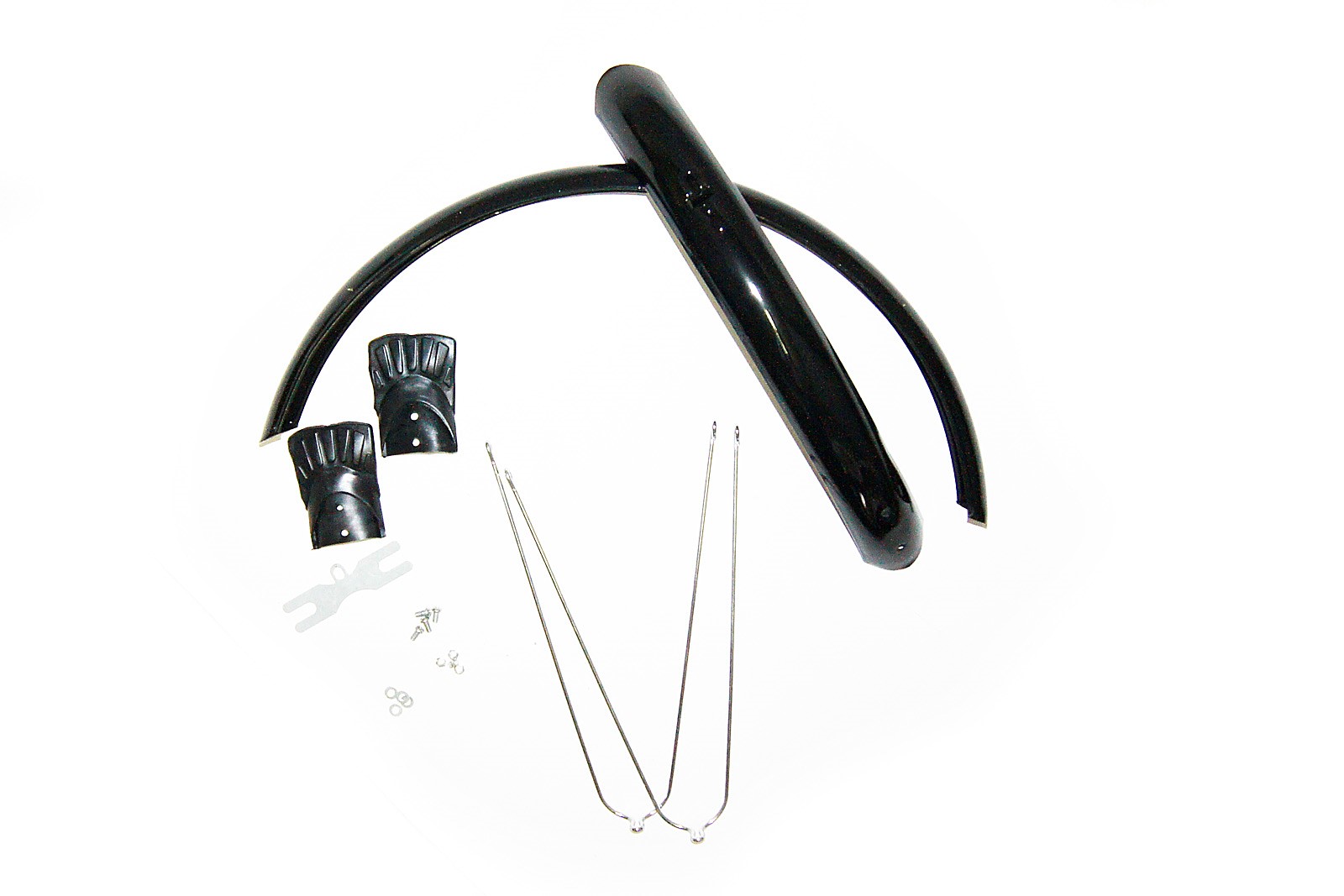 Komplet stalowych błotników do rowerów o rozmiarze koła 20''. Kolor czarny. Szerokość błotnika wynosi 55 mm. W zestawie błotniki+druty.